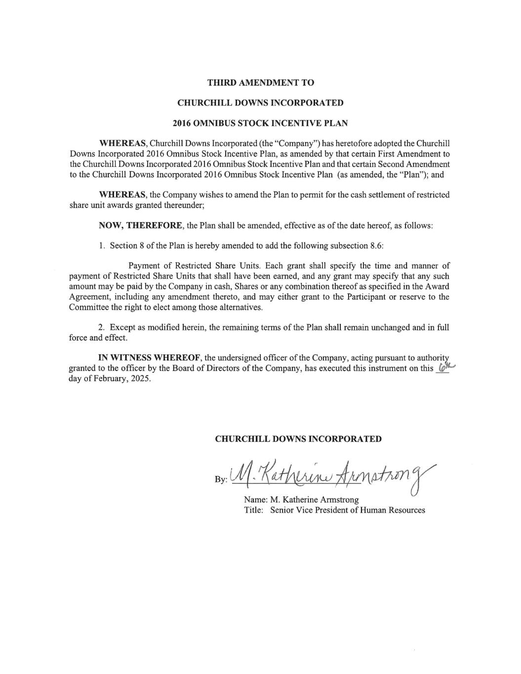 | | Third Amendment to Churchill Downs Incorporated 2016 Omnibus Stock Incentive Plan*† | | |