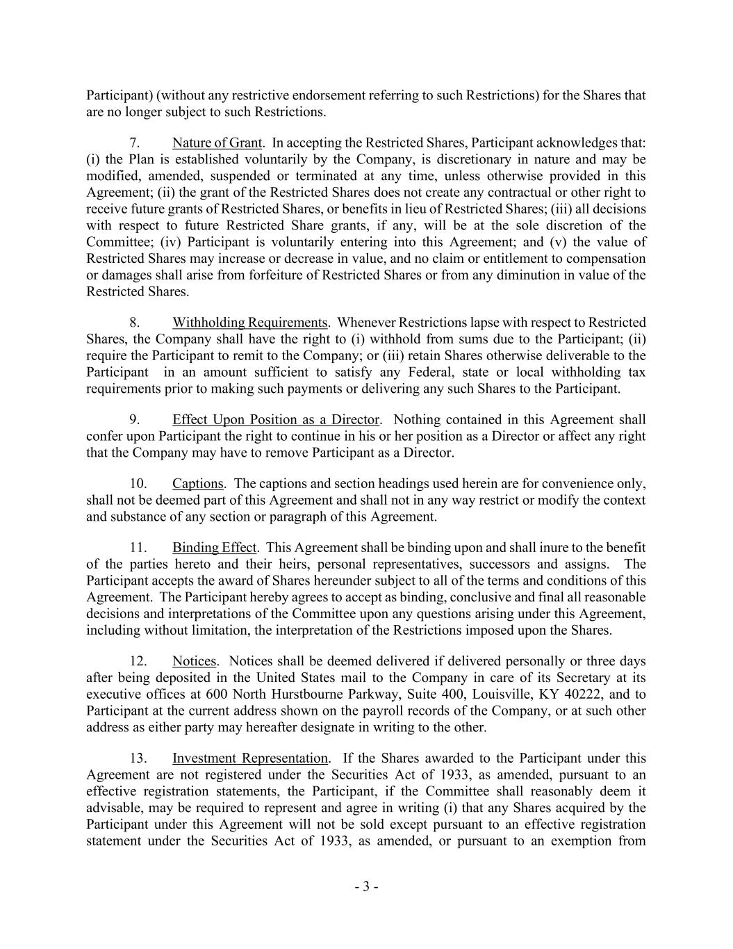 | | Form of Churchill Downs Incorporated Non-Employee Director Restricted Share Agreement* | | |