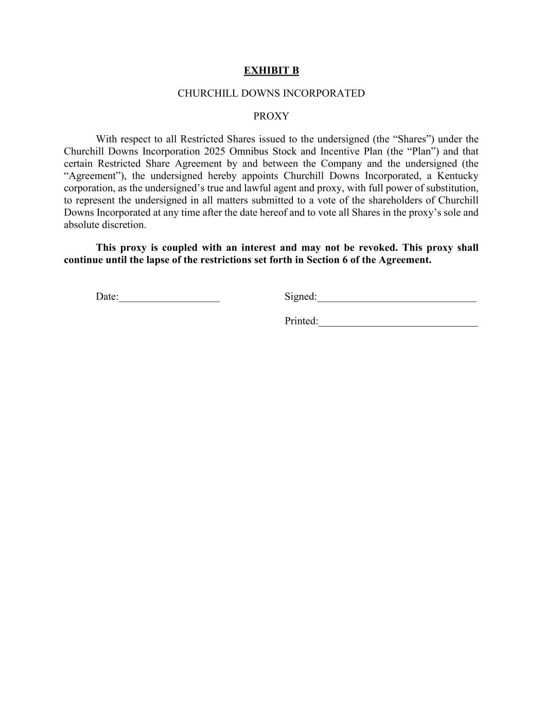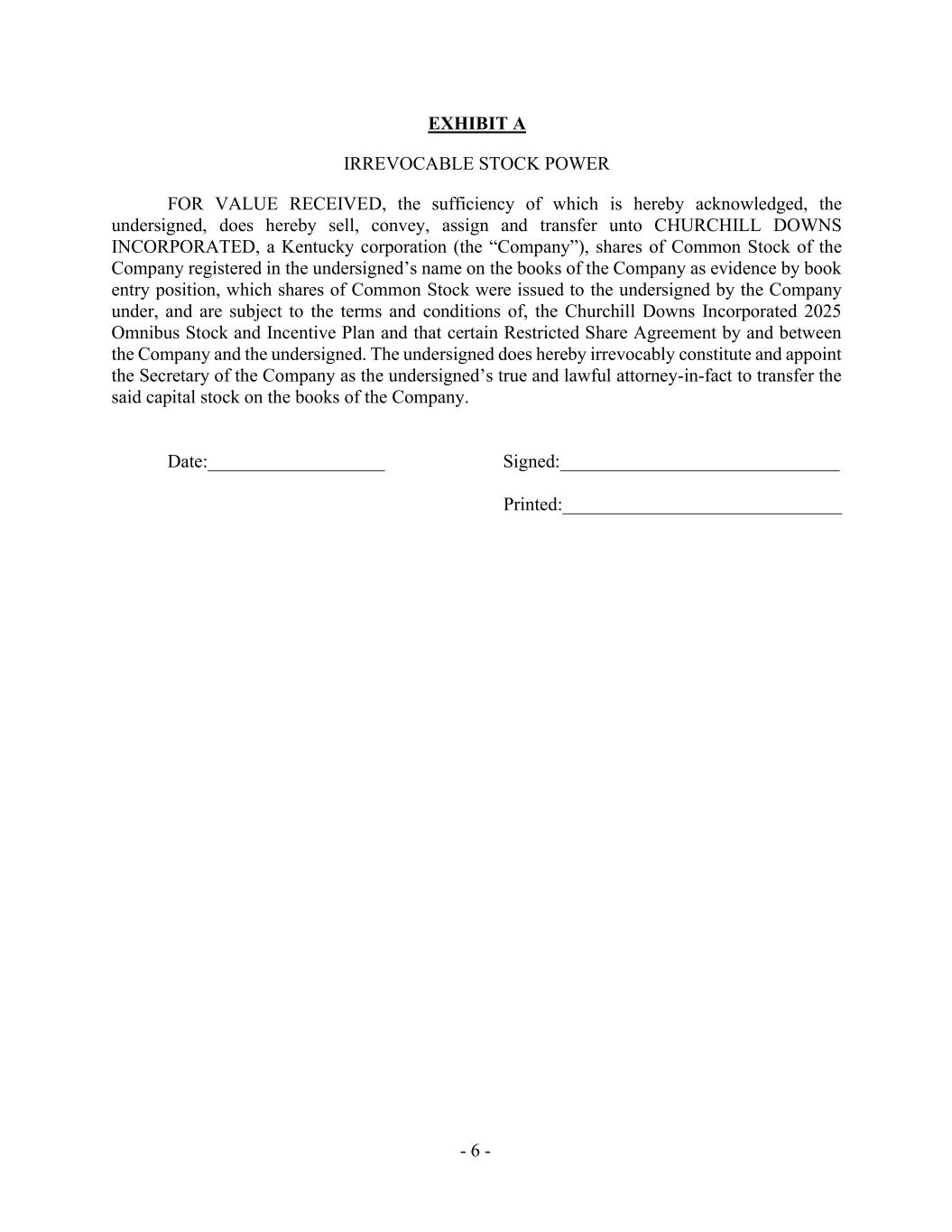 | | Churchill Downs Incorporated 2025 Omnibus Stock and Incentive Plan. | | Exhibit 4.1 to the Registration Statement on Form S-8 dated April 24, 2025. |