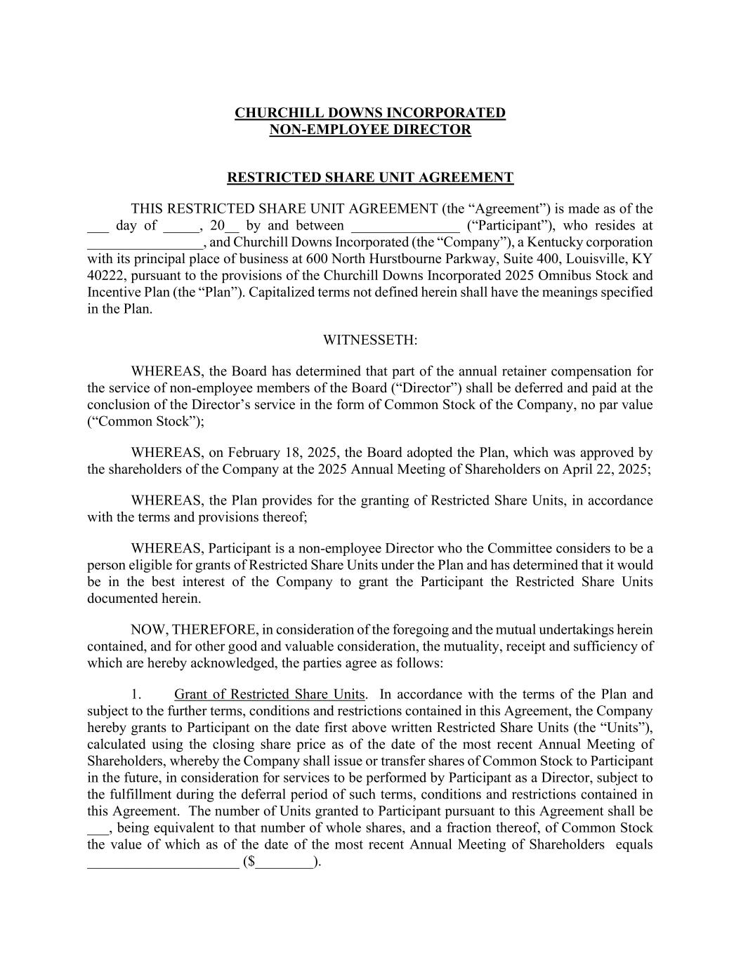 | | Form of Churchill Downs Incorporated Non-Employee Director Restricted Share Unit Agreement* | | |