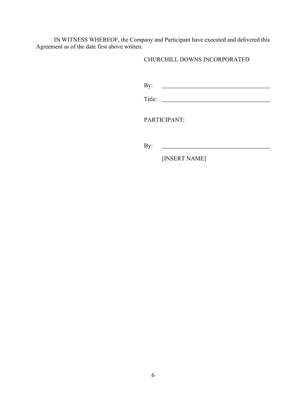 | | Memorandum of Understanding by and between Maureen Adams and Churchill Downs Incorporated† | | Exhibit 10.1 to the Current Report on Form 8-K dated June 26, 2025. |